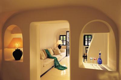Situated amidst the vineyard of Megalohori, in the legendary town of Megalahori. A truly inspired group of buidings which originated from the Eliopoulos mansion, built in traditional style with a true authentic look. Interiors are large and comfortable and very inviting with big cushions and the lively colors of the Greek islands. The Greek style is harmoniously combined with elements of of modern amenities and supreme pampering. Villa Vedema grounds are spacious so all the rooms, restaurants and pool areas offer lots of space for those searching for privacy. In addition to the swimming pool, there is a nice size Jacuzzi which offers an inspiring view for gazing at the full moon. The hotel has a private beach area where you will find Santorini day life active and lots of water sports available. The old winery carved out of the Theran earth has been converted into a unique wine bar restaurant. Tastes from numerous wines from around Santorini and Greece await you there. A member of The Starwood Luxury Collection ensures the quality of service even beyond.