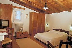 Villa Arhanes is an inn of quality, focusing on a lovely pastel-coloured central courtyard which now houses its small but welcome swimming pool and its own traditional Kafeneio. Original thick stone walls and much-timbered ceilings, a sensibly fitted conversion becomes an inn with 6 apartments. Though inward facing (there are room windows also to the outside and the village), this is bright and comfortable - a sort of private piazza for the guests. Rooms are comfortable with a rustic elegance. Bathrooms are tiled and well finished, with shower and WC. The apartments are on two levels, mostly with galleried upper bedrooms.