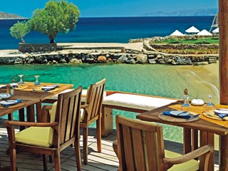 As you proceed through the wonderful stone-walled grounds and enter the lobby where you are greeted with a glass of champagne and professional, courteous staff, one starts to understand why this hotel is a member of the " Relais & Chateau " group. Antiques adorn the lobby and, as with the mural in the entrance and bar area, Cretan colors accentuate the view of the blue Aegean. Known for its many room categories and private plunge pools attached to many of the bungalows, there's sure to have accommodations to suit everyone. The tiered levels allow all the bungalows views of the sea. After enjoying the beautiful landscape with its dripping bouganvillea and own private church, you will find it diffucult to say goodbye. Do not forget to utilize the wonderful Six Sernse Spa, It offers every type of treatment ask for information.