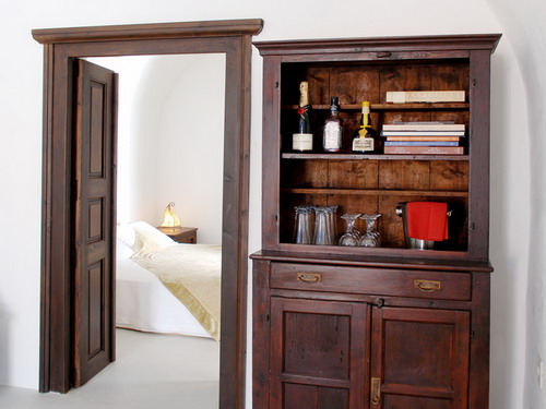 The layout of the house takes the form of the old traditional Santorini houses. The farm-style kitchen is large and well equipped with a dinning area. Double wooden doors open up into a single room and a staircase leads you up to a delightful den, which can accomodate two people. Through an arched passageway you will find the living room with doors leading out to the courtyard and pool. Double doors lead from the lounge to a comfortable double bedroom. The open-space bathroom has a Jacuzzi and shower with a separate restroom.