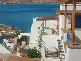 Yria Resort is a resort hotel in Parasporos Bay, this area is on the opposite side of the two main towns so it quietly more remote. Lovely mediterrean Decor.