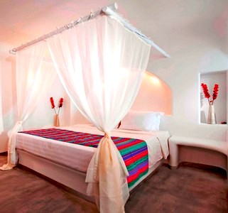 “Absolute Bliss” was built following the traditional architecture of Cyclades, with a view to the sea and the caldera and a unique design in the swimming pool area, while the rooms are tastefully decorated, respecting the traditions of Santorini and combining simplicity along with luxury. As a result, the visitor enjoys every minute of his or her stay. What is common to all the various types of rooms, is the big beds (queen and king sized), with soft mattresses and cushions, made either of natural coconut palm or of feathers, which, in combination with the view of the caldera, offer hours of true relaxation, enjoyment and regeneration.