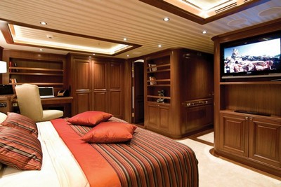 SY CLEAR EYES accommodates 10/12 guests in five very comfortable en-suite cabins. The Master stateroom with a king-size bed and 'his' and 'hers' bathrooms en-suite. One twin cabin with an extra bed and one double cabin with an extra bed, both with en-suite shower rooms. Two double cabins, each with en-suite shower room, are convertible into one large stateroom.