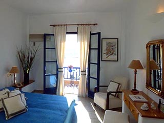 All rooms besides the happy rooms have balconies overlooking the beautiful Mylopotas Beach and are recently renovated.