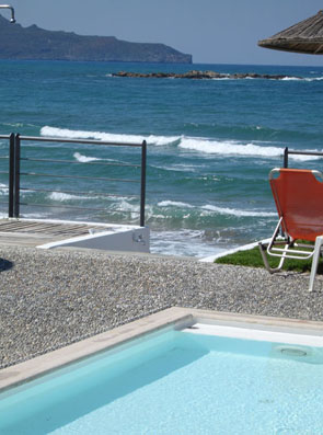 Ammos (which means "sand" in Greek) is proud of its location as it is right on the sandy beach, far away from the noisy main road and yet only 5 km from the Venetian harbour and the city of Chania, 1 km from the cute little village of Galatas and Daratsos and 4 km from the village of Platanias (the centre of night life). Crete is a land of astonishing diversity and ammos hotel is a perfect base for your daily excursions.