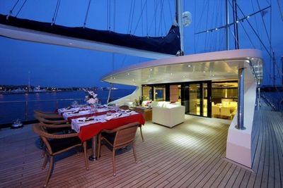 Two very large and ensuite cabins with Jacuzzi and King Size Beds. One aft below deck,other forward main deck. TV, SAT TV, DVD player in each cabins. Forward Master Cabin has