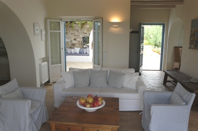 The villa is surrounded by its own beautiful garden with flowers and a plot for growing organic vegetables. It is built with the typical Cycladic architecture and is elegantly decorated with Asian and southern European influences.