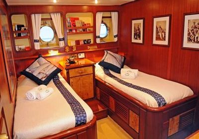Sleeping 12 guests in 6 guest cabins fully air-conditioned, with Sat Tv and Telephone and Wifi internet connection, and unsuited toilets: