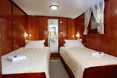 Motor Sailor LUNA can accommodate 18 guests in 8 cabins. Guests are accommodated in 6 Double cabins and 2 Twin cabins.