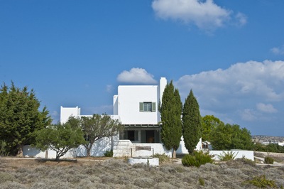 As you enter from the street there is a shaded garage for 3 cars. A path leads to a spacious interior court yard with a large built marble table, BBQ, guest WC and an open air shower. On this courtyard there is a guest room with 3 single beds suitable for teenagers and children attached to a bathroom with shower. Next to the guest house is the main entrance to the ground floor. It features open plan area including living room, office corner, TV room with library and fire place and a dining corner. Next to the living area there is a fully equipped kitchen with a separate dining area and 2 terraces. One terrace in the back and one in the front, both have side sea views and a wooden Pergola. In front of the living area there is a veranda with partial sea view, garden furniture and a wooden pergola. On the other side of the living area is the master bedroom with king size bed and en suite bathroom with large shower room. Wonderful sea views are possible from the bed and the veranda outside the bedroom. From the back courtyard, stairs lead us to the upper floor separate guesthouse. It features two bedrooms, one with Kind size bed and one twin bedded, and a bathroom with shower. There is a private veranda with panoramic view of the Aegean and Naxos Island on the distance. A daybed with cushions is available on this veranda to take an afternoon siesta. A separate entrance leads us to the basement where one finds a bedroom with twin beds, a large storage area with bathroom and shower. The villa does not have A/C. The house architectural design allows cool temperature during the hot summer days. Fans are available in all bedrooms in the house is equipped with satellite TV, DVD and hi fi and WI fi in the living area. The fully equipped kitchen includes dishwasher and there is a washing machine in a small laundry room.