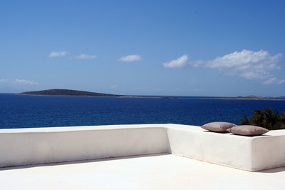 The house is located in the community of Makria Myti of Alyki, on the southeast side of Paros. The house is placed at a unique location by the sea. It is built in two levels and you can enjoy the view from every corner. The architecture followed is the traditional architecture of the Aegean islands, yet simple and modern.