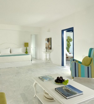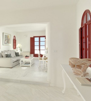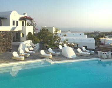 Situated amidst the vineyard of Megalohori, in the legendary town of Megalahori. A truly inspired group of buidings which originated from the Eliopoulos mansion, built in traditional style with a true authentic look. Interiors are large and comfortable and very inviting with big cushions and the lively colors of the Greek islands. The Greek style is harmoniously combined with elements of of modern amenities and supreme pampering. Villa Vedema grounds are spacious so all the rooms, restaurants and pool areas offer lots of space for those searching for privacy. In addition to the swimming pool, there is a nice size Jacuzzi which offers an inspiring view for gazing at the full moon. The hotel has a private beach area where you will find Santorini day life active and lots of water sports available. The old winery carved out of the Theran earth has been converted into a unique wine bar restaurant. Tastes from numerous wines from around Santorini and Greece await you there. A member of The Starwood Luxury Collection ensures the quality of service even beyond.