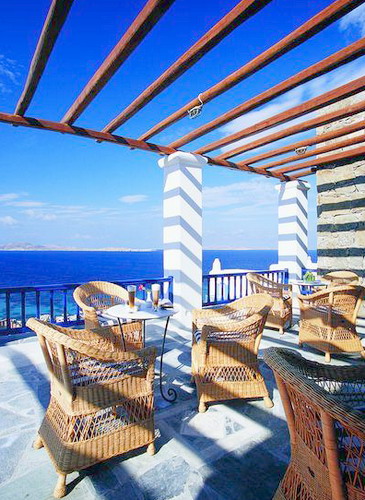 Azzuro bar: Discreetly located in the main building with a beautiful panoramic view of the bay and sacred island of Delos. This bar offers a wide selection of cocktails and beverages including a selection of fine Cuban cigars.
