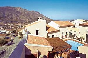 Villa Arhanes is an inn of quality, focusing on a lovely pastel-coloured central courtyard which now houses its small but welcome swimming pool and its own traditional Kafeneio. Original thick stone walls and much-timbered ceilings, a sensibly fitted conversion becomes an inn with 6 apartments. Though inward facing (there are room windows also to the outside and the village), this is bright and comfortable - a sort of private piazza for the guests. Rooms are comfortable with a rustic elegance. Bathrooms are tiled and well finished, with shower and WC. The apartments are on two levels, mostly with galleried upper bedrooms.