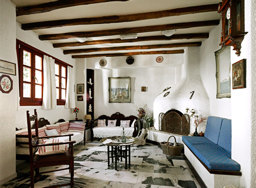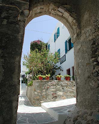 Amidst the winding streets of Naxos and the castle this charming hotel is found. Most rooms have canopy beds and simple wooden furnishings. The breakfast room is in the Greek home style, even includes the television. Although it's in the town, it is quite peaceful, especially amidst the hibiscus trees draped over the summer courtyard, nice for off season.