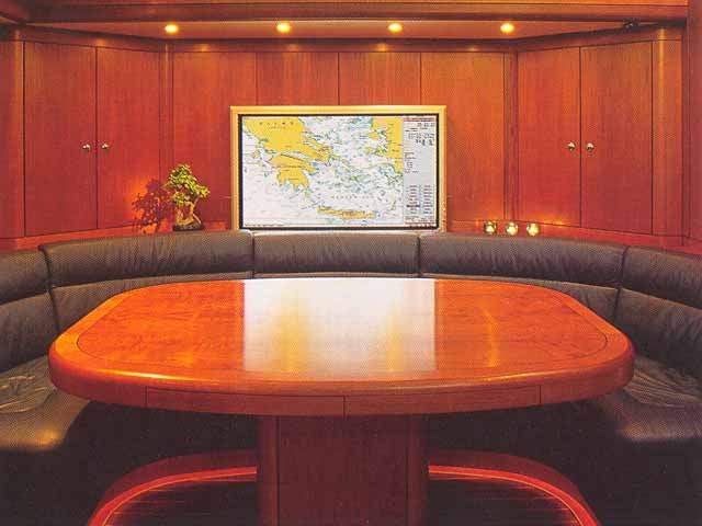 S/Y "Eratosthenes" achieves the opposite ideals of comfort and performance, interior space and outside length. Above all "Eratosthenes" is quite simply a fabulous looking yacht. Her perfect proportions, jet blue hull, white superstructure, teak decks and mahogany interior result in an overwhelming result of great sailing yacht style. Unlike most sailing yachts, Eratosthenes’ custom design gives a panoramic view from the upper salon. The dining area seats six guests comfortably. The crew are experts in the art of encouraging relaxation. On hand, to help you with the leisure equipment and invisible when you want to be alone or enjoy the company of friends.