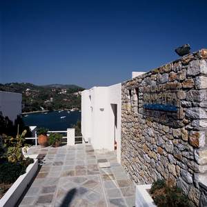 Each of the 9 comfortably arranged apartment-suites have their own patio or terrace and the design makes the most of the breathtaking panoramic sea view and maximizes privacy, while stone-flagged paths, archways, pitches and surrounding pine trees are delightfully typical of the Sporades.