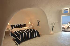 Aegean Cycladic architecture, Icons hotel consists of twenty three neighbouring traditional cave houses, renovated and constructed by Dimitris Karantavanis, offering modern comforts and five star amenities, split in 5 different levels “platyskala” where breathtaking views and intimate atmosphere, the volcanic landscape and the warm colors of sunset adds to an already dramatic view.