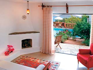As you proceed through the wonderful stone-walled grounds and enter the lobby where you are greeted with a glass of champagne and professional, courteous staff, one starts to understand why this hotel is a member of the " Relais & Chateau " group. Antiques adorn the lobby and, as with the mural in the entrance and bar area, Cretan colors accentuate the view of the blue Aegean. Known for its many room categories and private plunge pools attached to many of the bungalows, there's sure to have accommodations to suit everyone. The tiered levels allow all the bungalows views of the sea. After enjoying the beautiful landscape with its dripping bouganvillea and own private church, you will find it diffucult to say goodbye. Do not forget to utilize the wonderful Six Sernse Spa, It offers every type of treatment ask for information.