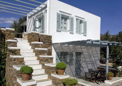 For 2 persons on the top floor, a very spacious and elegant suite comprised of a bedroom, and a living corner with sofa. It is surrounded by large verandas with view of the surrounding olive groves and gardens and with a limited sea view.