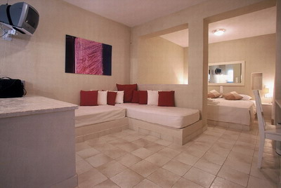 For 2 persons on the top floor; comprised of a double bed, some with a built in sofa bed. The superior rooms also have a large veranda with view of the surrounding olive groves, garden and a limited sea view. Some rooms can accommodate a third person if the sofa bed is used.