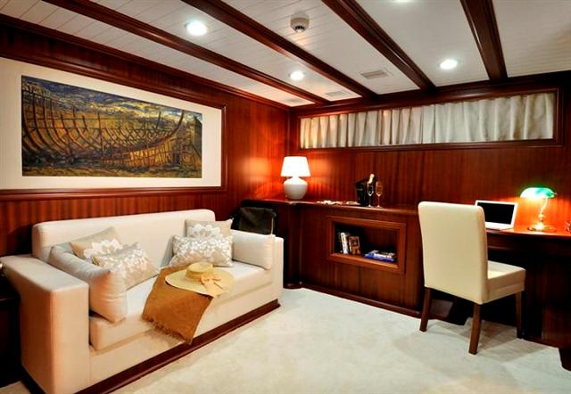 The interior styling has a classical features and will be executed in clear mahogany wood and white lacquered. All three master cabins has a separate dressing room and specially fitted with Satellite TV, DVD and music system. Every detail will be considered for guests conformity. Other guest cabin are considered as comfortable as owner cabins. The large saloon and deck area give a possibility of excellent charter cruise for guests both on engine and sail cruising with international and capable sailing hardware. A large galley has all necessary equipment to cook all world's cousins. She also has five crew cabin with a crew mess for 8-9 people.