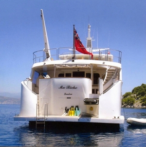 All cabins are beautifully decorated with service phones. She has a large salon and lovely aft deck for dining (day head). Easy access to the tender and swim platform for waters ports. On the bridge deck a bar, ample seating (in sun and shade) and barbecue Sun Deck. This vessel is in immaculate condition. Full 24 hour Air Conditioning. MA BICHE is fully air conditioned through out. Crew has a separate heads and shower.