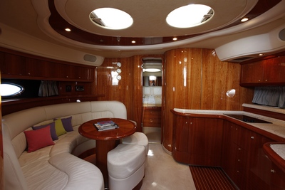 Master Cabin: Queen-size pedestal berth. hanging lockers are provided on each side, en suite bathroom, cherry wood furniture, safe in cabin