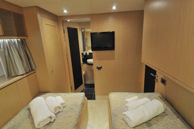 2 Guest cabins have 2 single beds turned to double bed plus an additional pullman berth, shower and toilet.