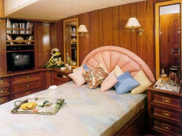 A graceful Greek vessel of extreme beauty, designed and constructed in 1993. Teak is the main element of woodwork throughout her attractive lines, whilst all carpentry is handcrafted. She offers a unique opportunity for adventure and sailing in a traditional style with excellent service provided by a crew of four. The saloon is well lit, elegant, and very comfortable and leads to a well catered and formal dining room. A further dining table located on the cool, and cushioned aft deck is an all time ‘open-air’ favourite, be it for breakfast, snacks or sumptuous dinners. There is a fore deck with comfortable cushions to provide endless hours of sunbathing and relaxation as well as a variety of sports.