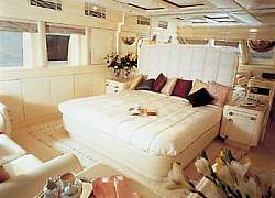 Both Carmens are built to very high standards and comply to International ABS Rules and Safety requirements. The hull lines have been optimized for minimum resistance and optimun seakeeping that result in superb performance in rough seas, giving a perfectly smooth ride. Add to this the overwhelming luxurious interior, state-of-the-art machinery and equipment, and you have the perfect motor-yacht in this category. The different interior design and a slightly different layout will help you distinguish Carmen Fontana from CARMEN SERENA. It is a matter of personal preference as to which suits your taste. Manned by professional and attentive crews these two sister-ships are superb charter-yachts. Ten guests in five luxurious staterooms. One master suite on the upper deck with private study and marble bath with jacuzzi tub. On the lower deck two double and two twin staterooms with en suite marble baths with jacuzzi tubs.