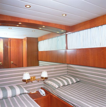 For 9 guests in four cabins; one master, one VIP, one twin and one twin with extra pullman birth, all with en suite facilities.Crew of 4 in separate quarters.