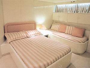 2 cabins with double beds plus one Pullman berth each, all with Sat TV/Radio/Cassette players.