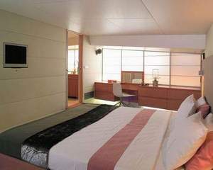 The large master cabin is situated forward. She has a double bed, study area, walk in wardrobe, marble bathroom with shower and separate head.