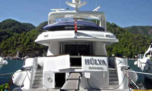 ‘HULYA’ is a five year old immaculate, semi displacement motor yacht. Her volume is reflected internally offering a large saloon with ample seating for twelve on soft tan leather settees. Her classic interior design features a luxurious yet comfortable decoration with Maple wood and cream lacquer paneling throughout with recessed and cleverly light deck heads. The dining area forward of the salon offers elegant formal dining or dining at her two al fresco areas; on the aft deck or very spacious upper deck.