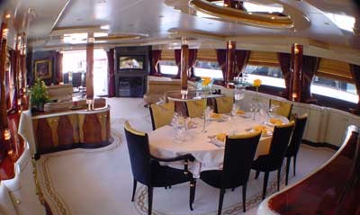 On her teak-laid deck ‘HULYA’ satisfies all needs from sunbathing on the foredeck to socializing on the upper deck with it’s Jacuzzi, BBQ and marble topped bar. The dining area is split port and starboard comfortably seating 12 guests. This area has a semi permanent awning over to provide plenty of shade. With the tenders and jet skies removed from the aft upper deck there is even more space for sunbathing. Alternatively relax on the aft main deck with a book and cocktail in the comfortable seating areas in addition to the eight seated wooden inlaid dining table.