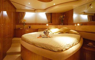 Aicon 56 sleeps 6 in 3 cabins plus 1 in skipper’s cabin.. 1 forward double VIP cabin, with hanging lockers. head and showers and vacuum driven toilet, 1 side double cabin with hanging lockers and 1 Master large cabin with head and shower and vacuum driven toilet, equipped with CD player and LCD Tv. There is also one separate head and toilete next to the salon. Skipper’s aft cabin with head, shower and separate entrance.