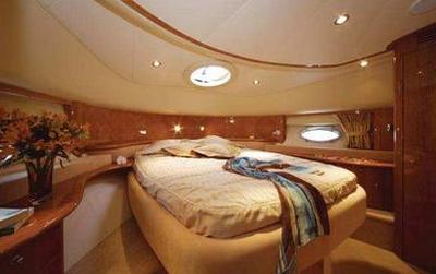 Aicon 56 sleeps 6 in 3 cabins plus 1 in skipper’s cabin.. 1 forward double VIP cabin, with hanging lockers. head and showers and vacuum driven toilet, 1 side double cabin with hanging lockers and 1 Master large cabin with head and shower and vacuum driven toilet, equipped with CD player and LCD Tv. There is also one separate head and toilete next to the salon. Skipper’s aft cabin with head, shower and separate entrance.