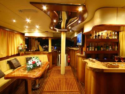 Motor Sailer ALEXANDROS, a new, beautifully, classic motor sailor, designed and built in Greece, combines the classic Greek character of a gaff schooner and the technical elements of a modern sailing yacht. Different woods of teak, iroko, cherry, rose and olive trees have been carefully selected and handcrafted to bring forth her unique and charming character. She accommodates up to 10 guests in four cabins, two double-bedded cabins, one cabin with a double and upper twin bed and one cabin with three twin beds. Each cabin has its own private bath, music system and the two double-bedded cabins have plasma TVs. The open salon and wheelhouse, with a panoramic sea view through large windows, creates a warm and friendly atmosphere for guests to dine, relax and enjoy. The large and beautifully crafted table and couch space is the center and focal point of the room where guests can watch movies, surf the internet and savour the tastes from the galley. Her exterior deck includes two large tables in the aft, comfortably seating ten and ideal for exterior dining, large open deck space in the fore for sunbathing and sofa seating facing forward in the yachts fore along with 2 small tables make for the perfect place to view the horizon while sailing . Guests can enjoy numerous water activities aboard, from fishing, to jet skiing, to scuba diving.