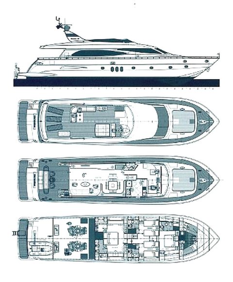 The VIP Cabin is almost identical to the Master Cabin, but there is no walk-in-dressing. However, space is not a question there is ample room for your personal belongings due to the closet located on the right as you enter and drawers. The en-suite facilities have one WC of black marble, identical to the one in the Master Cabin and shower. For your further relaxation Satellite TV, DVD, CD and hi-fi audio are just a touch upon your request, air-conditioning and a small safe.